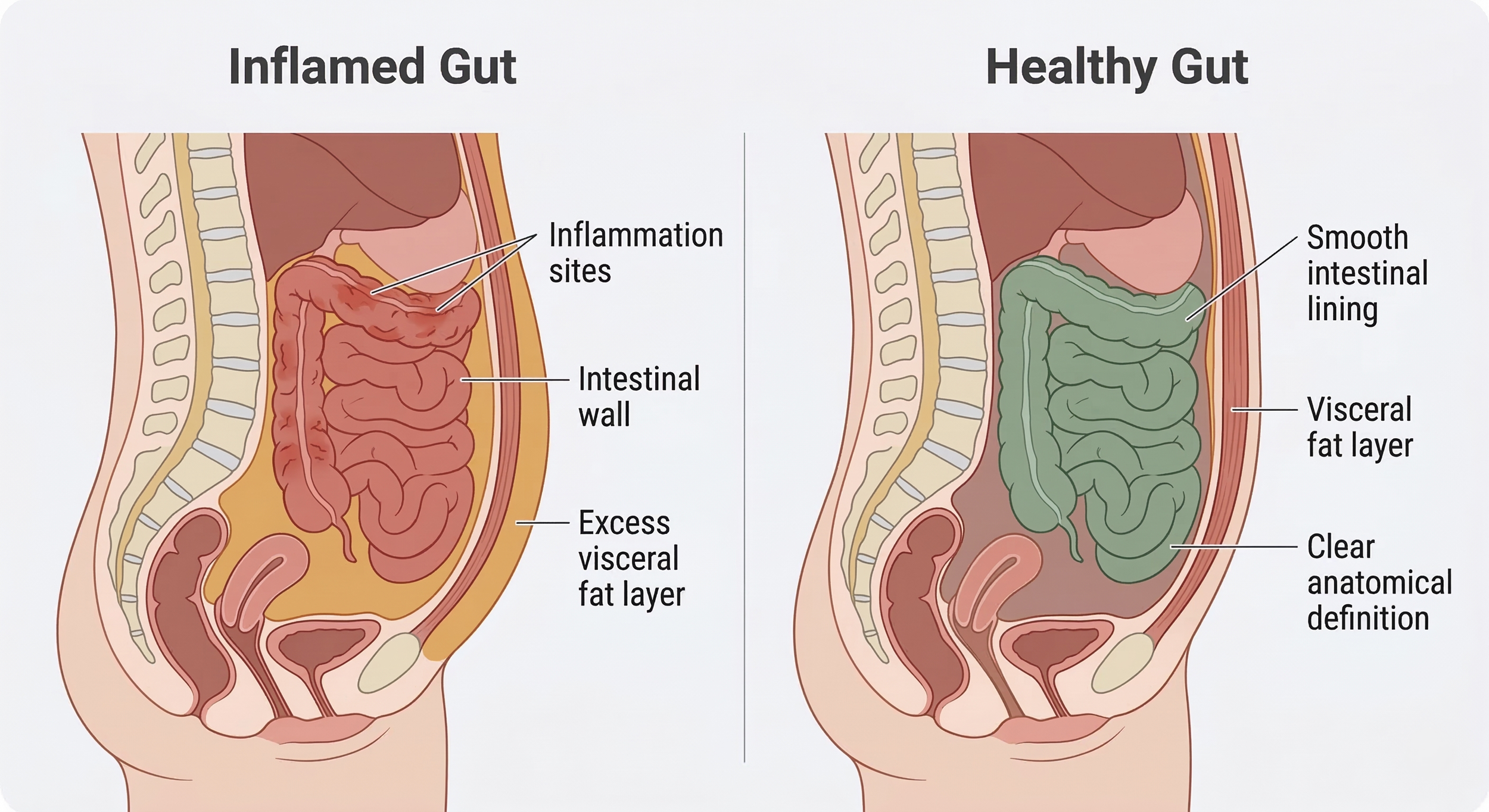 Why does gut inflammation block fat loss? Here's the simple version: chronic inflammation elevates cortisol and makes everything harder. Elevated cortisol tells your body to hold onto fat, particularly around the midsection. It also impairs insulin sensitivity, which means your body handles carbohydrates worse and stores more of them as fat. You can be eating clean and training hard, and if your gut is inflamed, your body will fight you the whole way.