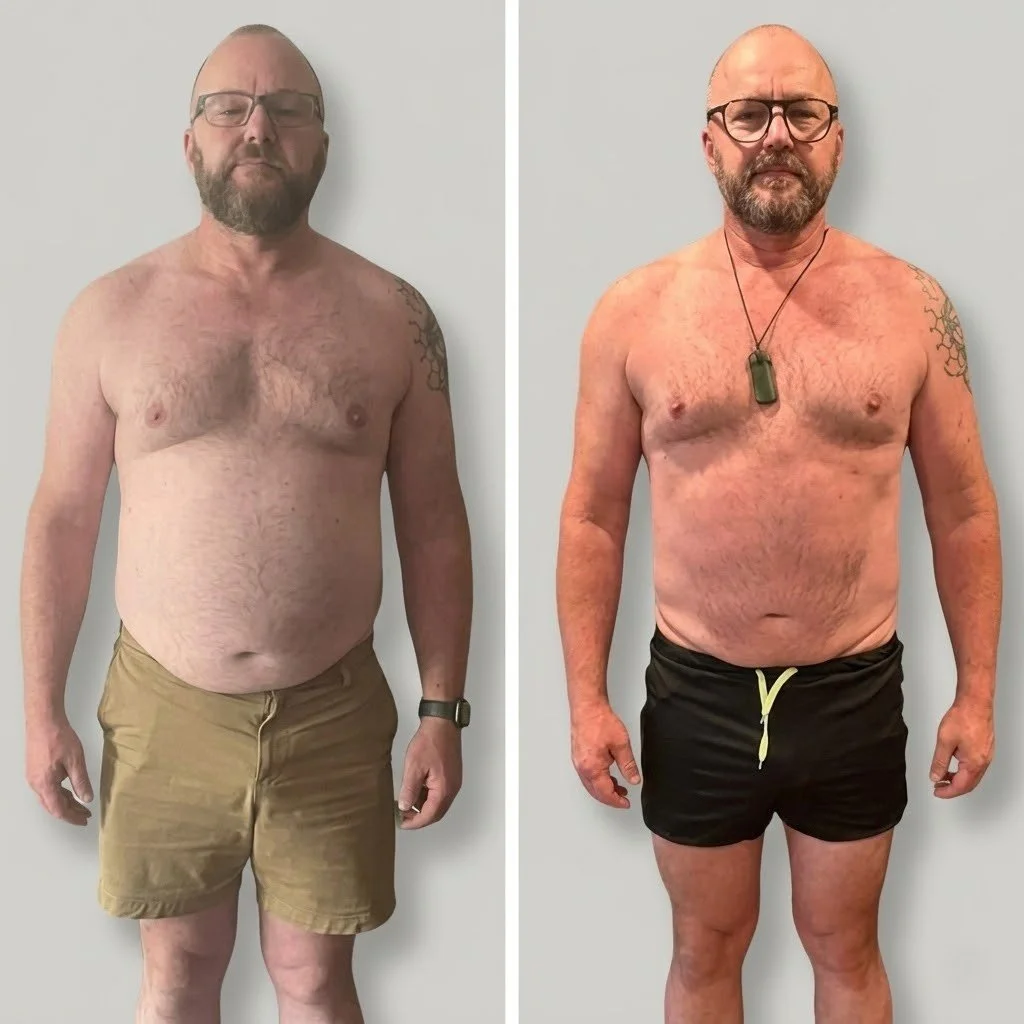 Andrew sent me his first set of progress photos, and I could see the problem immediately. He was 56, had been training on and off for years with multiple trainers, worked hard, showed up consistently, and followed the programs they gave him. And for all that effort, he'd gotten nowhere. Completely plateaued. Frustrated. At that point, he was starting to wonder if his body had just stopped responding.